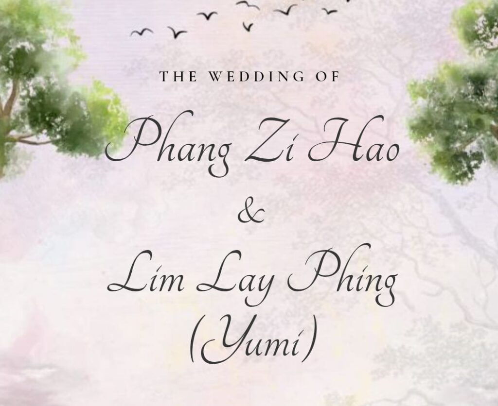 THE WEDDING OF Phang Zi Hao & Lim Lay Phing(Yumi) Dear Open Invitation THE WEDDING OF Phang Zi Hao & Lim Lay Phing(Yumi) A Celebration of Love “Two souls, one heart and a lifetime of love begins tonight.” GROOM& BRIDE You are cordially invited to the wedding of Phang Zi Hao & Lim Lay Phing […]